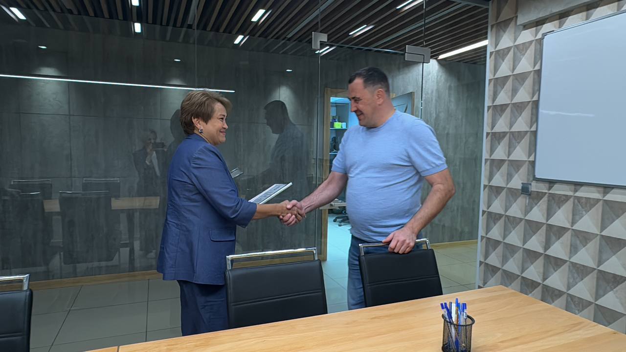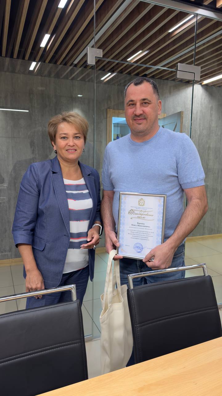 Сегодня в офисе компании министр труда и занятости населения Оренбургской области Наиля Исхакова вручила директору «Восточки» Олегу Воронец благодарственное письмо за содействие в организации Форума труда «Живи и работай в Оренбуржье». Вы наверняка помните, на масштабном мероприятии, которое в Оренбурге прошло в начале сентября, нашей компанией было организовано питание более пятисот волонтеров и организаторов события, рассказывал об этом тут ранее. При чем это не первый наш опыт подобного сотрудничества с министерством и центром труда, за это и благодарность.
